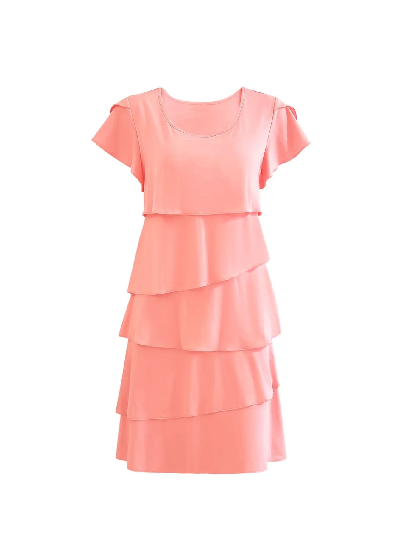 Casual Layered Round Neck Ruffled Sleeve Dress